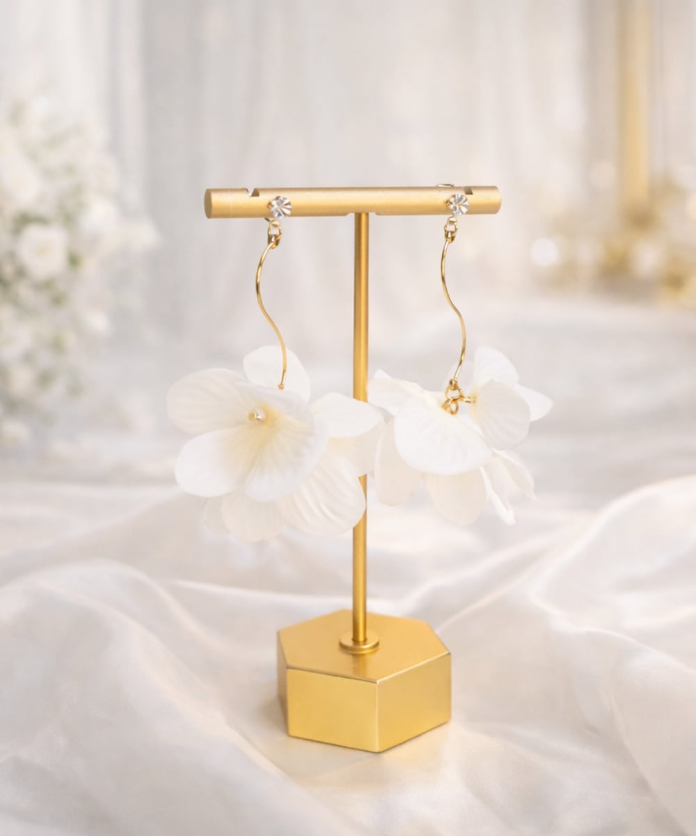 耳元からゆるやかに揺れるゴールドのラインが、