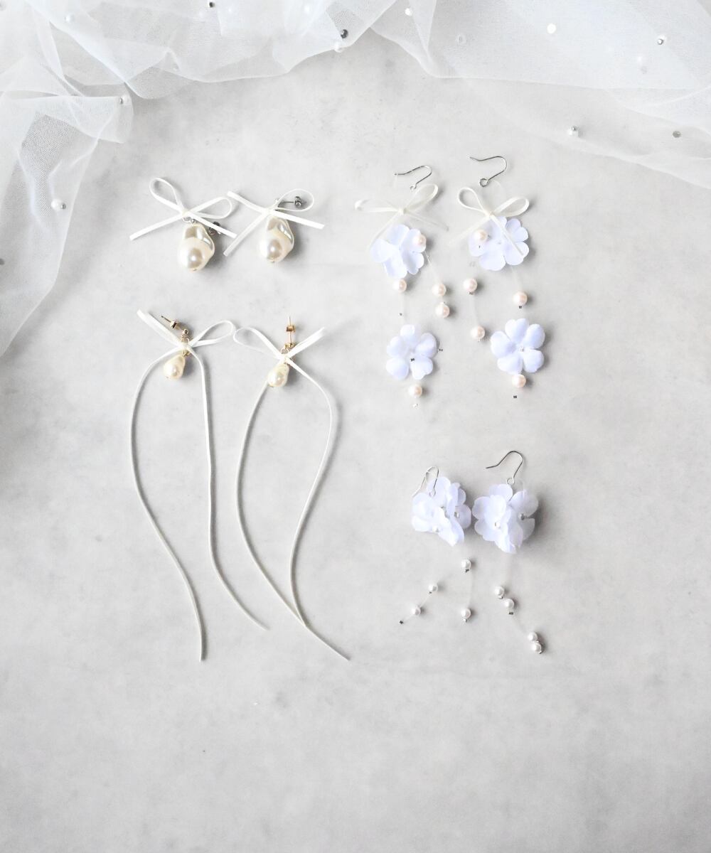繊細なリボンを添えた小ぶりのイヤリング/ピアス。