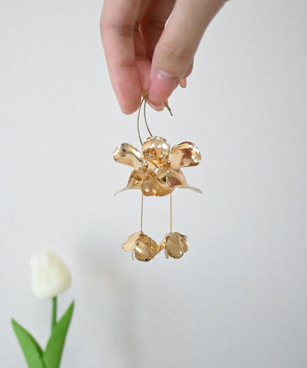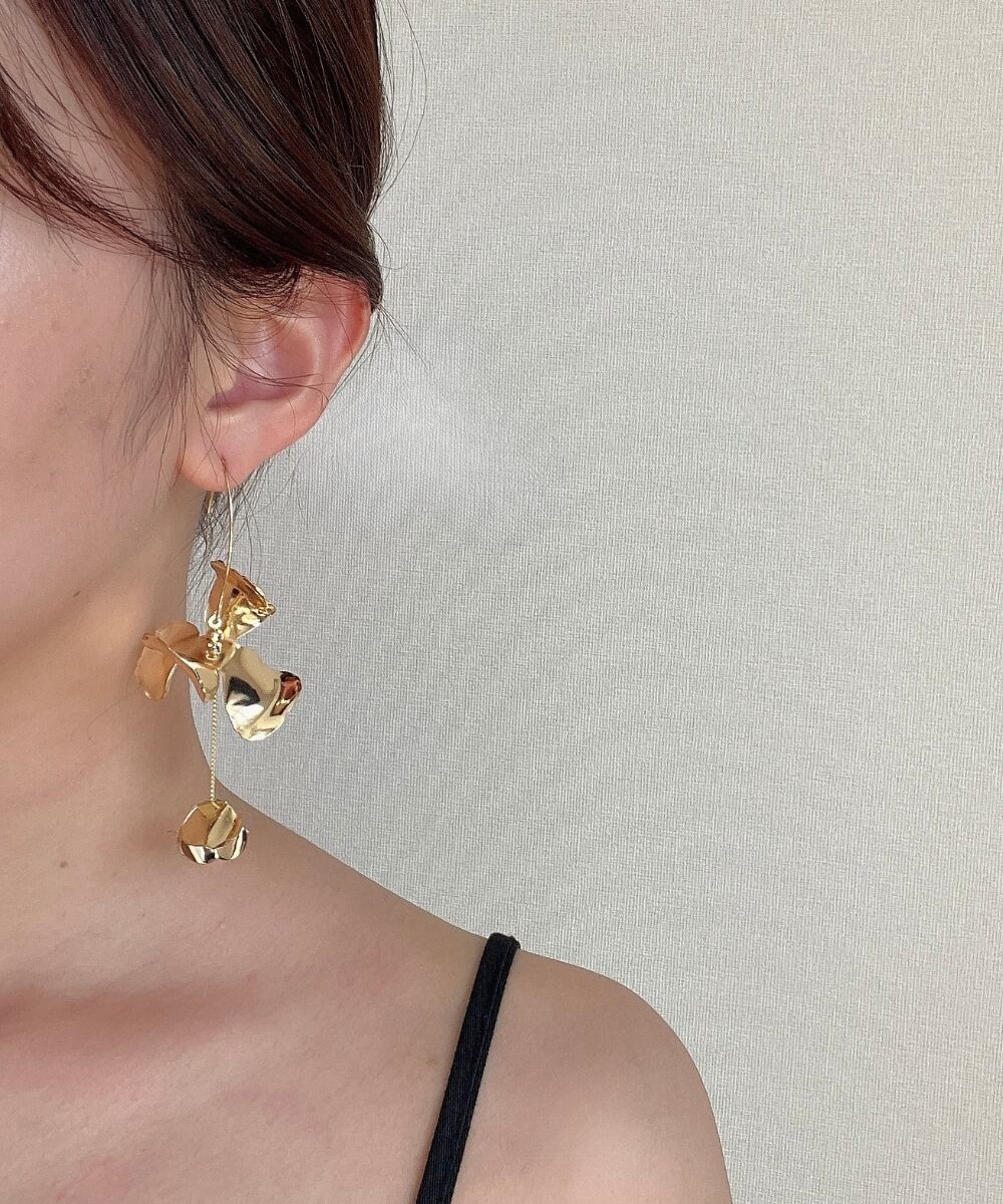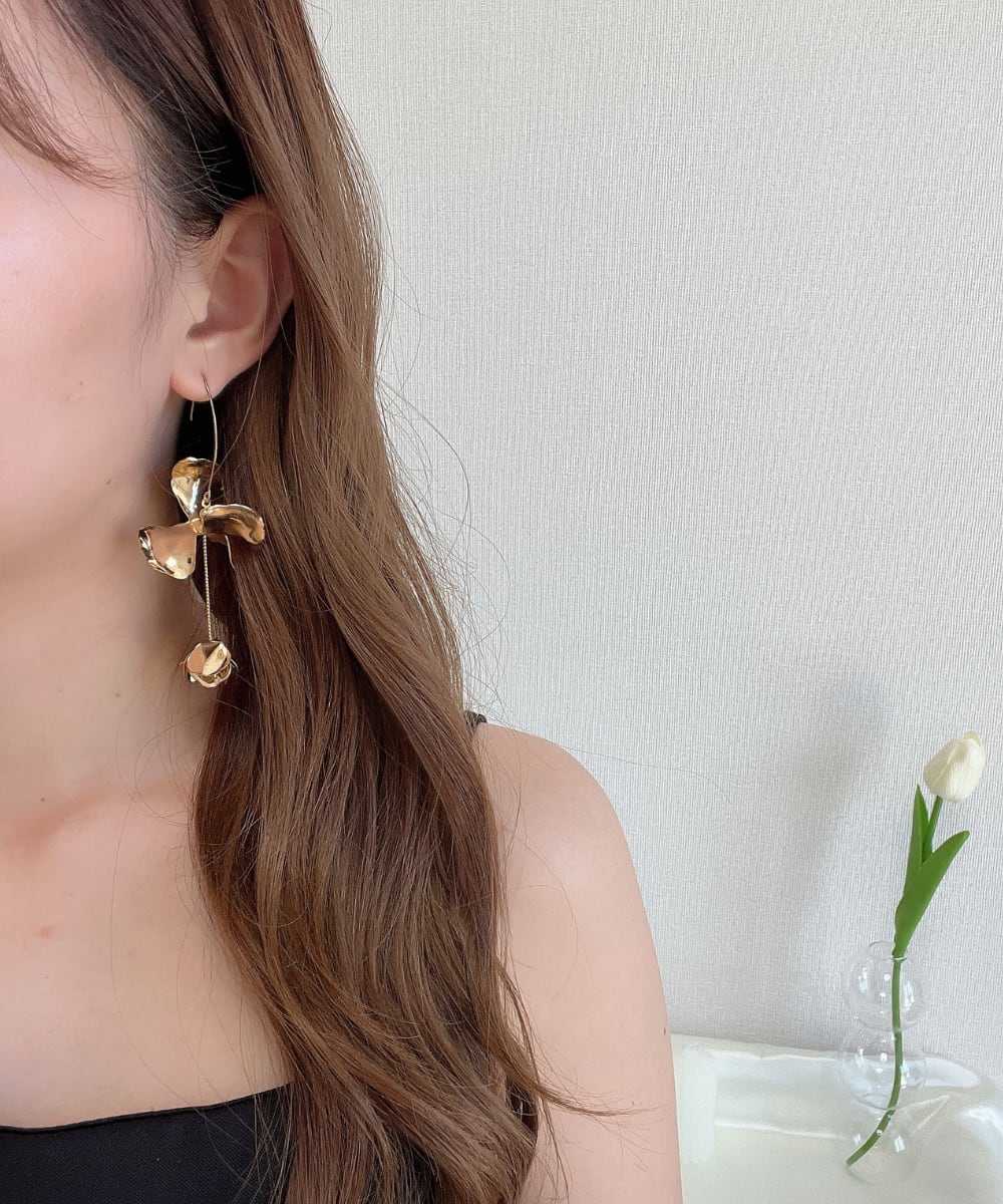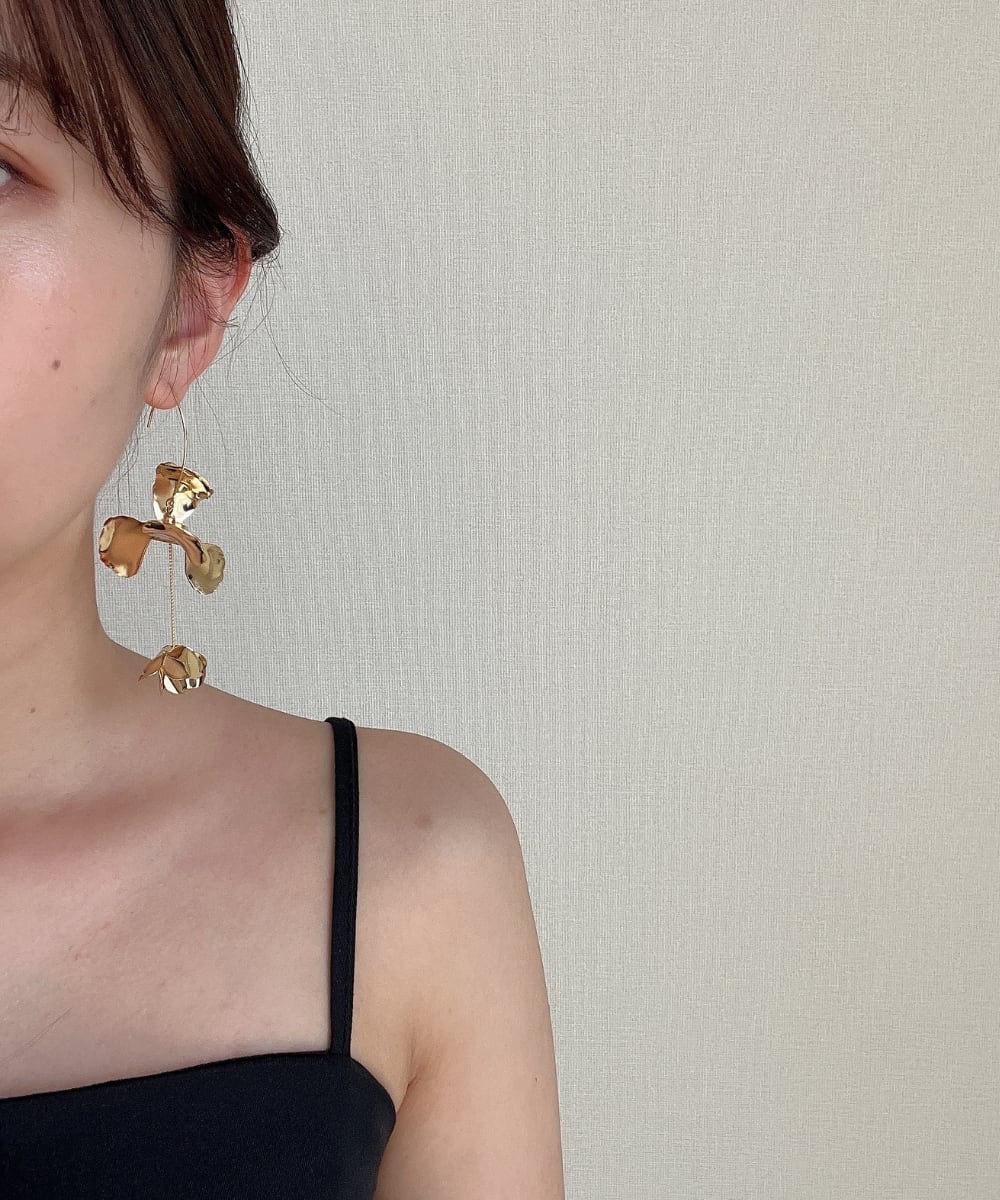細く長いチェーンを組み合わせた存在感のあるアクセサリー。